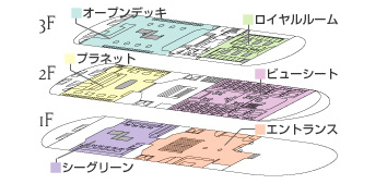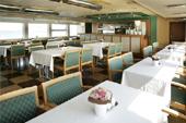 前方に広がるパノラマビューのお部屋が特徴のレストラン船。